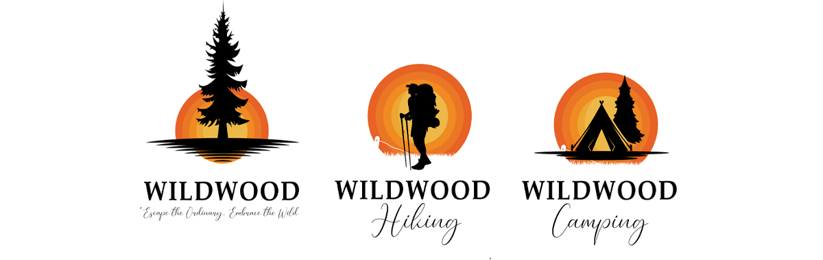 1. Natural Elements: stylized tree or mountain silhouette, representing the wild and untamed beauty of nature. Trees symbolize life, growth, and endurance, while mountains convey adventure, challenge, and grandeur.